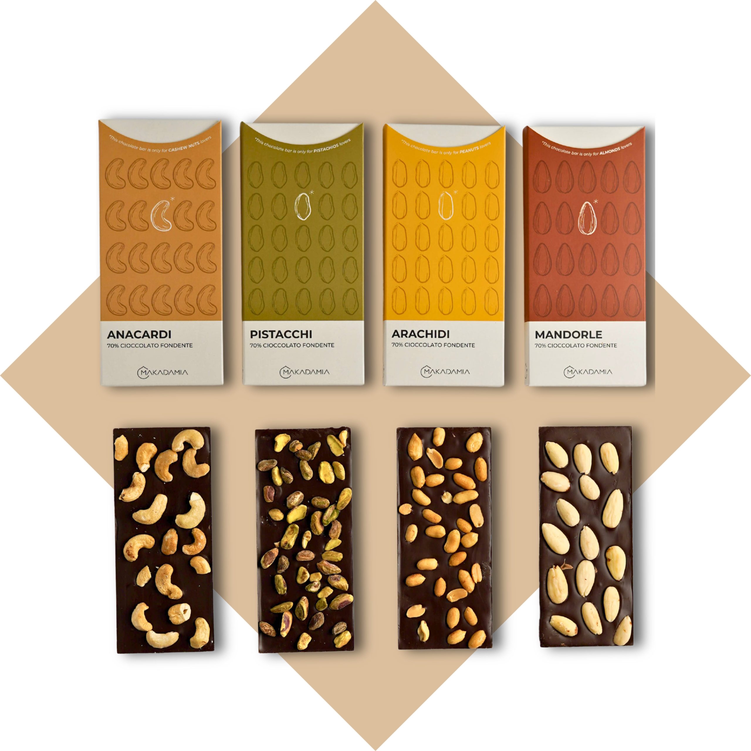 tavolette di cioccolato e pistacchio makadamia