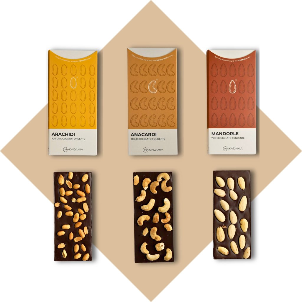 Dopo mesi di studio con i nostri artigiani siamo finalmente riusciti a realizzare uno scrigno di cioccolato belga, fondente al 70% che racchiude al suo interno un cuore morbido dato dalle nostre creme 100% di frutta secca.