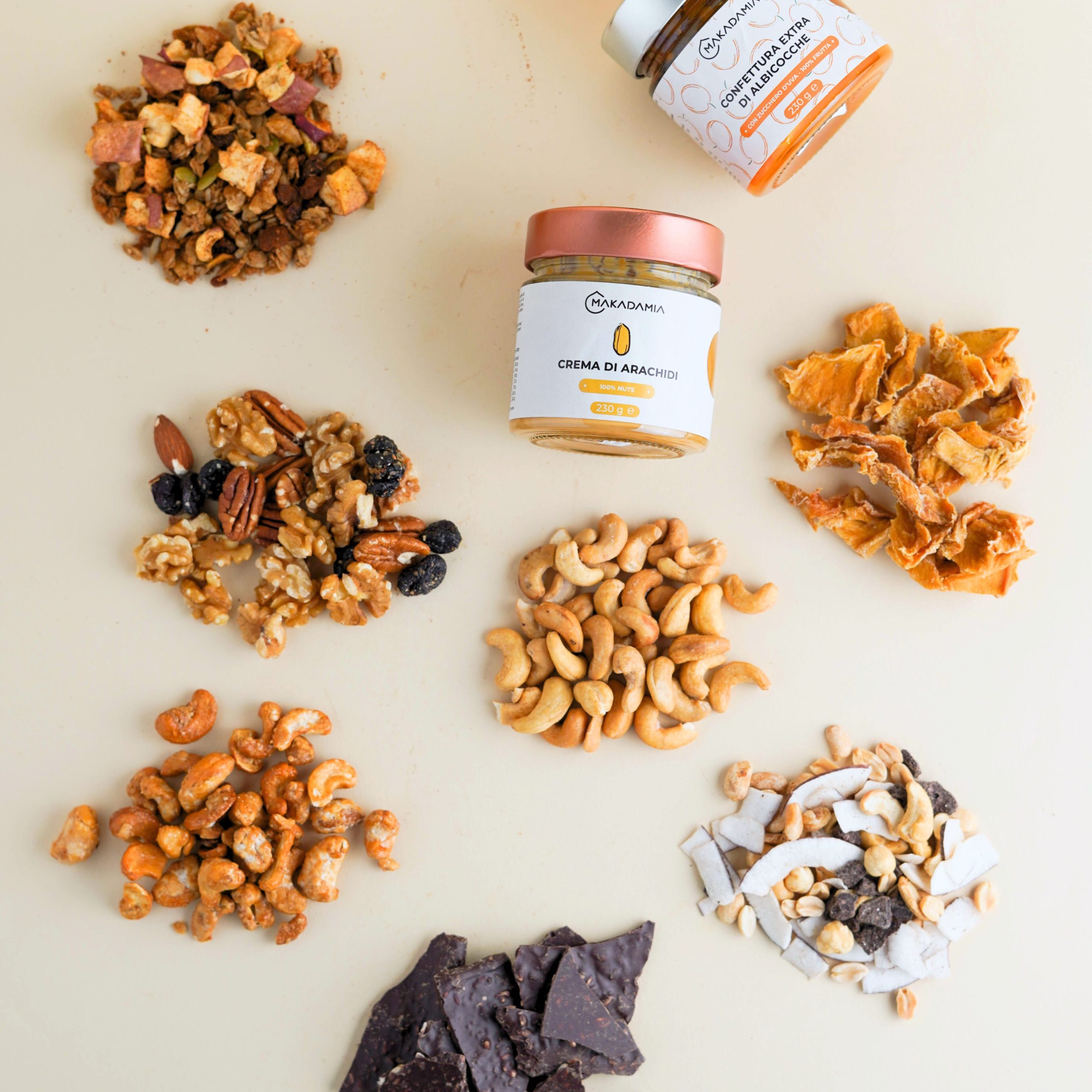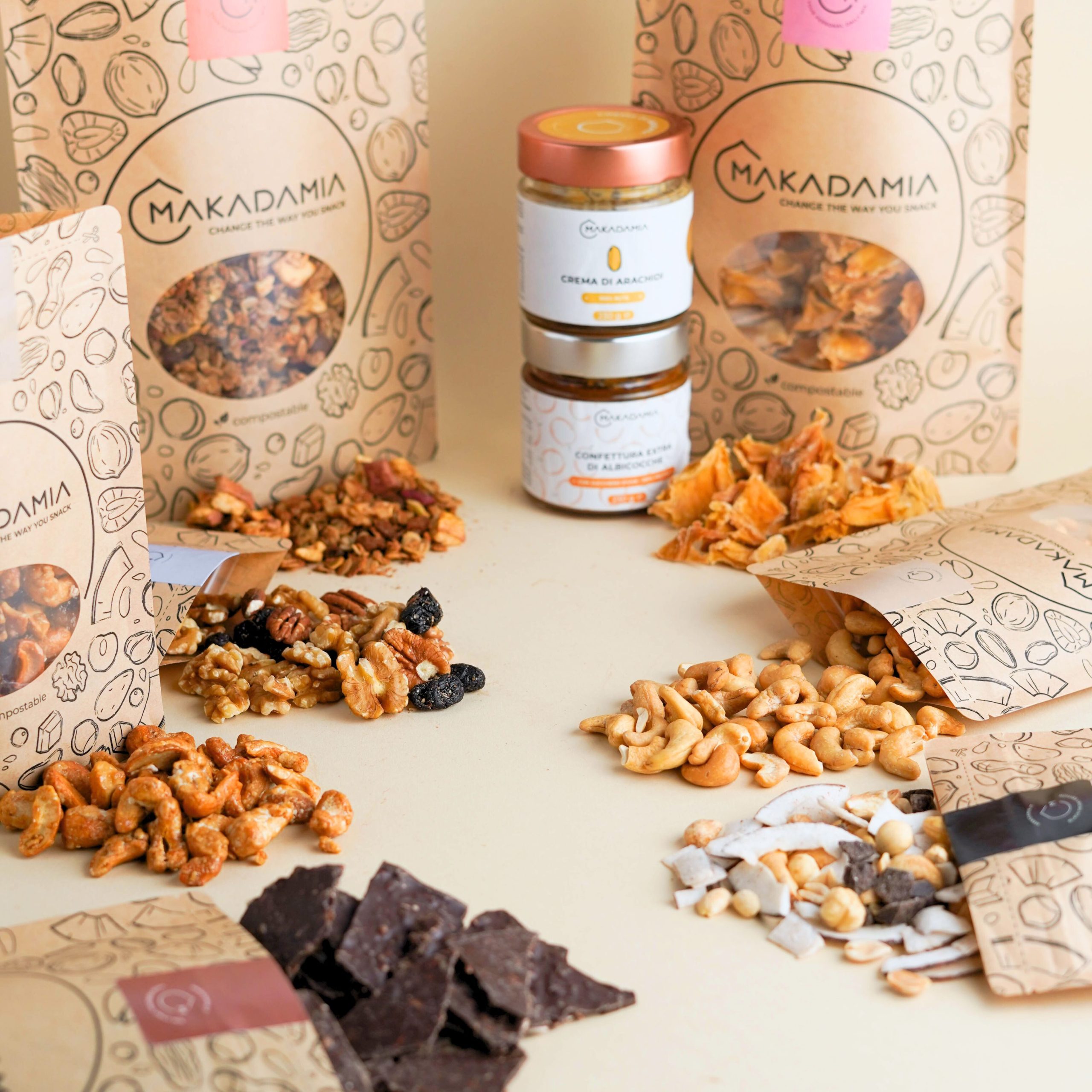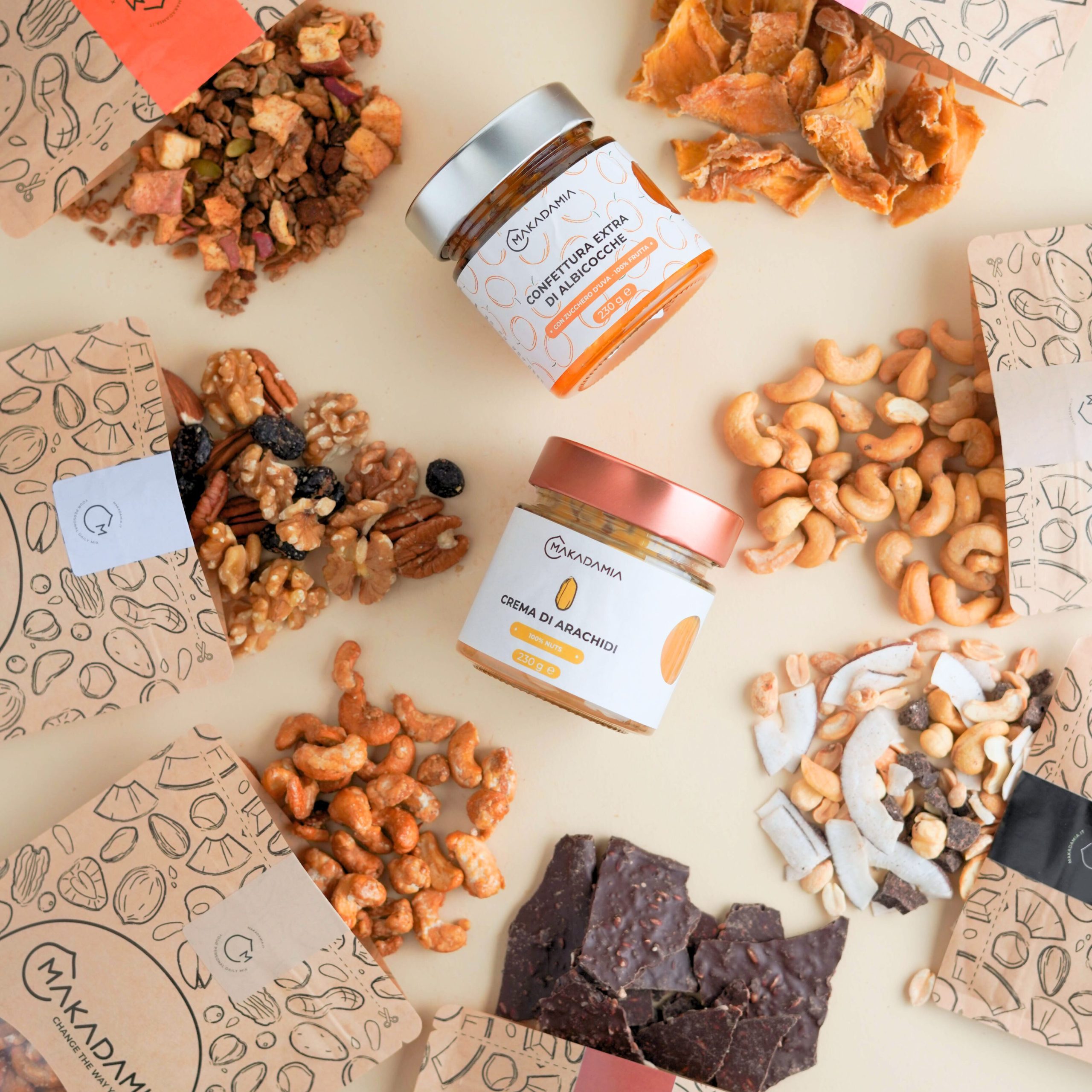 La Makadamia Selection – Taglia Large è la scelta ideale per chi vuole scoprire non solo i nostri prodotti bestseller, ma anche un assaggio più ampio del nostro mondo: una selezione generosa, varia e ricca, pensata per chi ama esplorare nuovi sapori naturali.