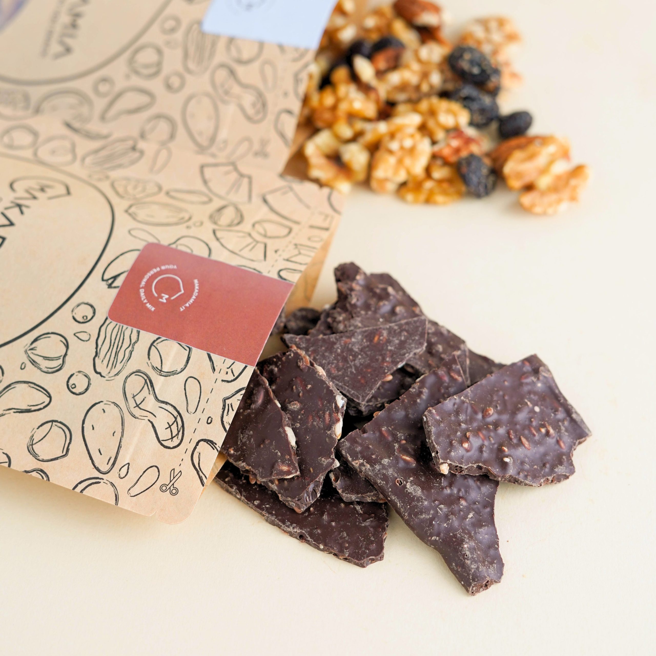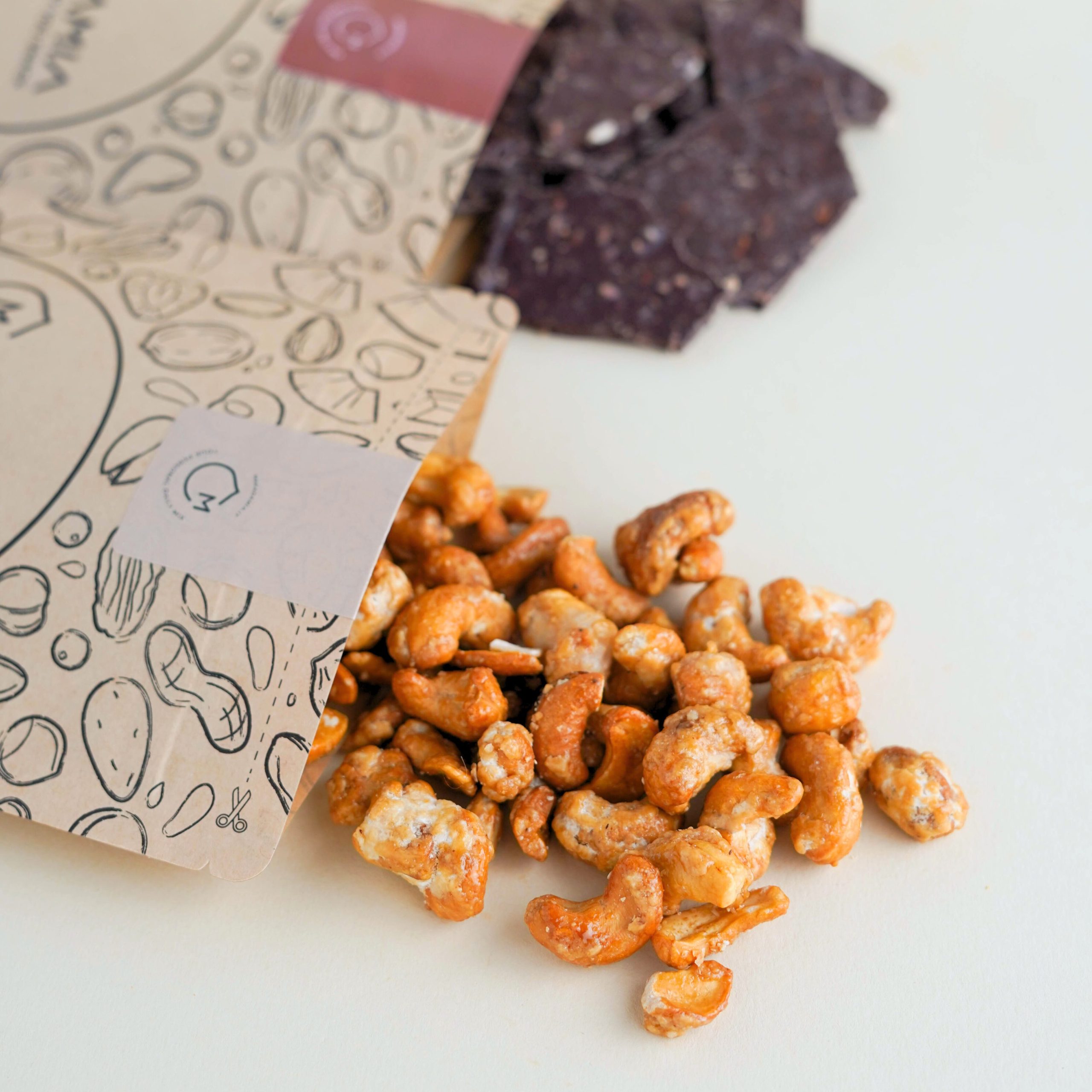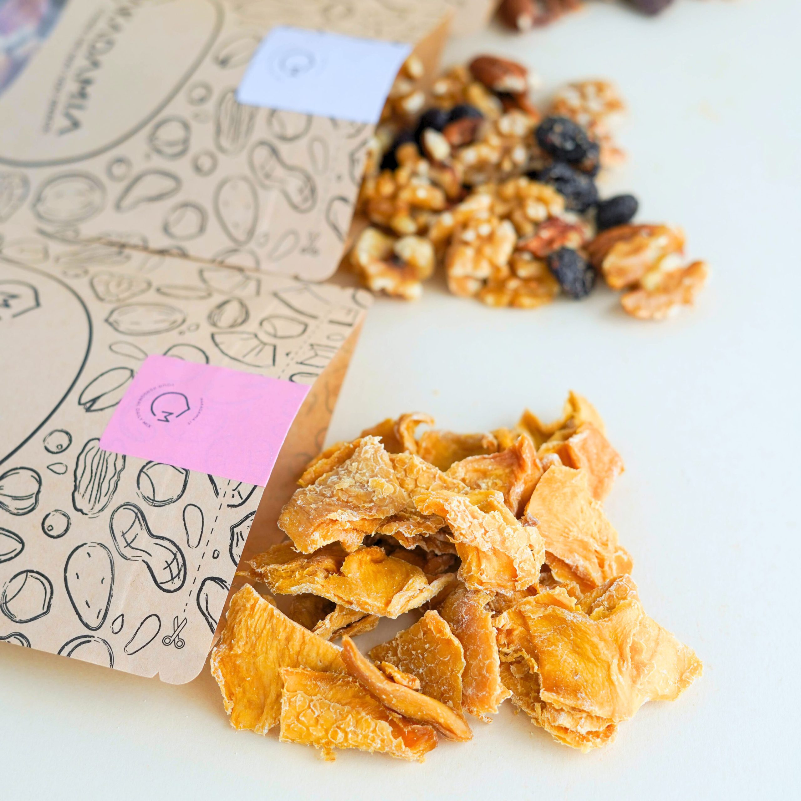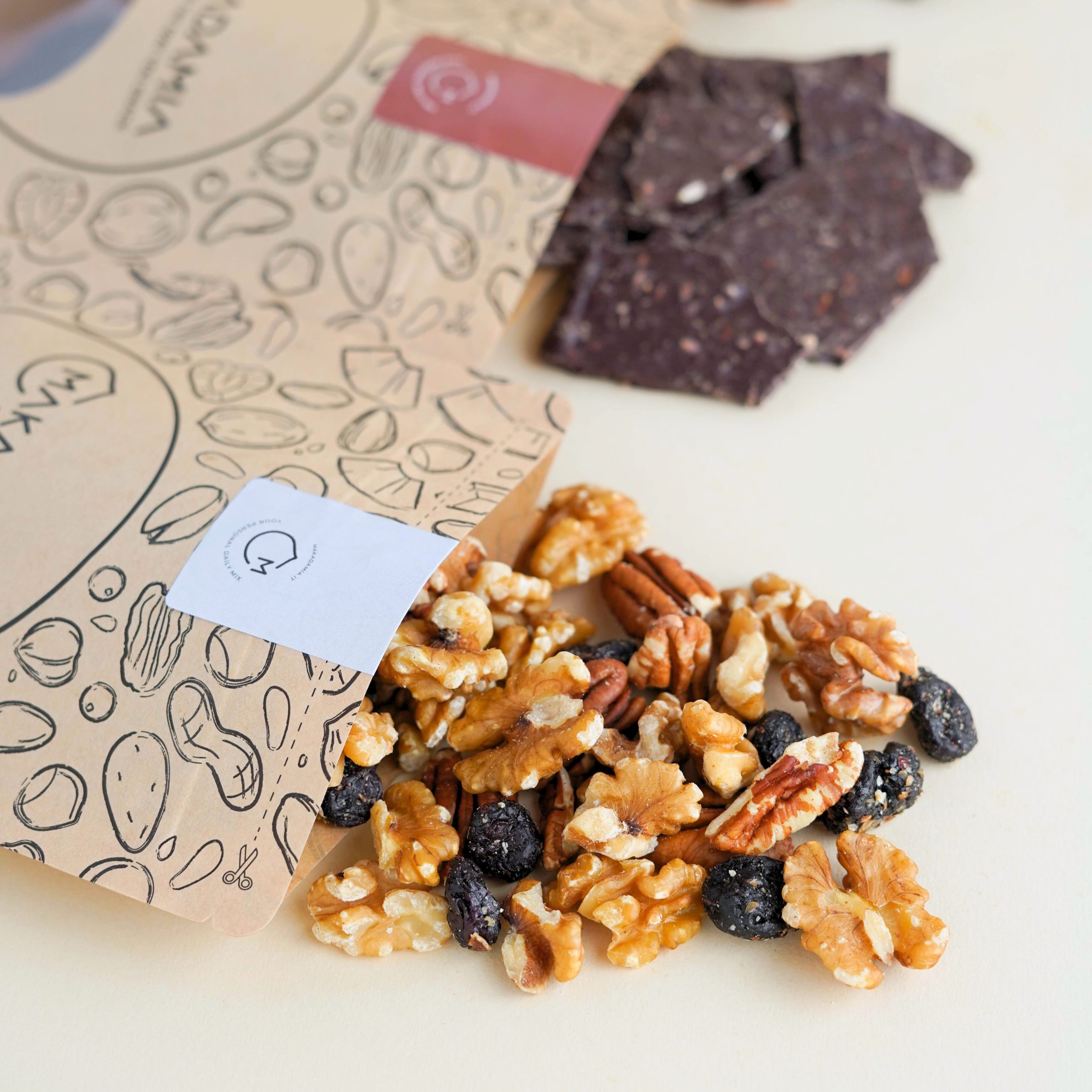 Tutto arriva a casa tua in un pack 100% compostabile, con la possibilità di aggiungere il Maka-Tool, il nostro porta-snack riutilizzabile che ti segue ovunque.