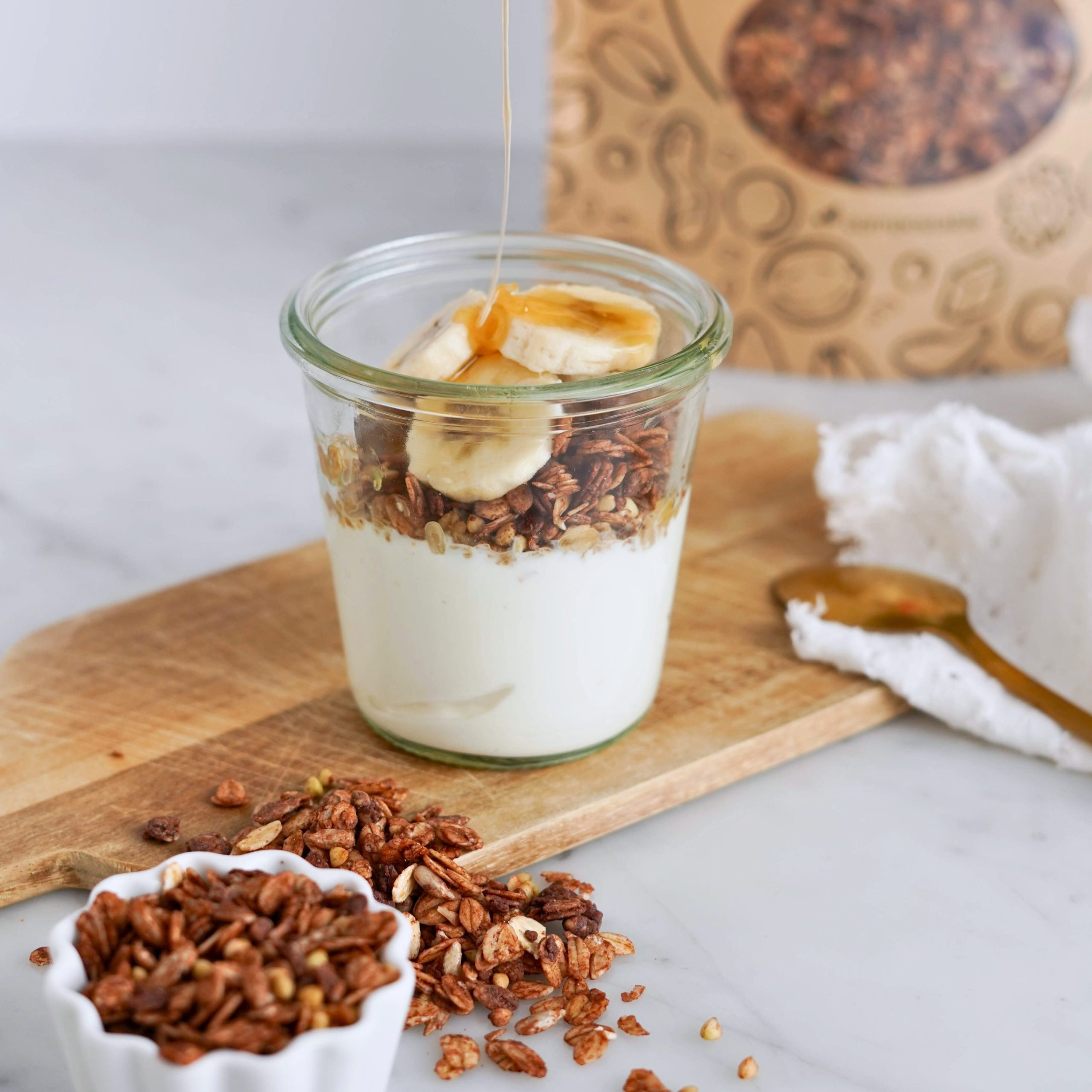 Acquista online la nostra Granola al Cioccolato per dare alle tue colazioni una nota intensa, croccante e irresistibilmente golosa.